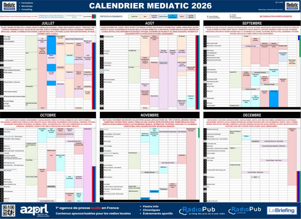 Calendrier éditorial, commercial et promotionnel utile pour la cohésion antenne, commercial et digital.